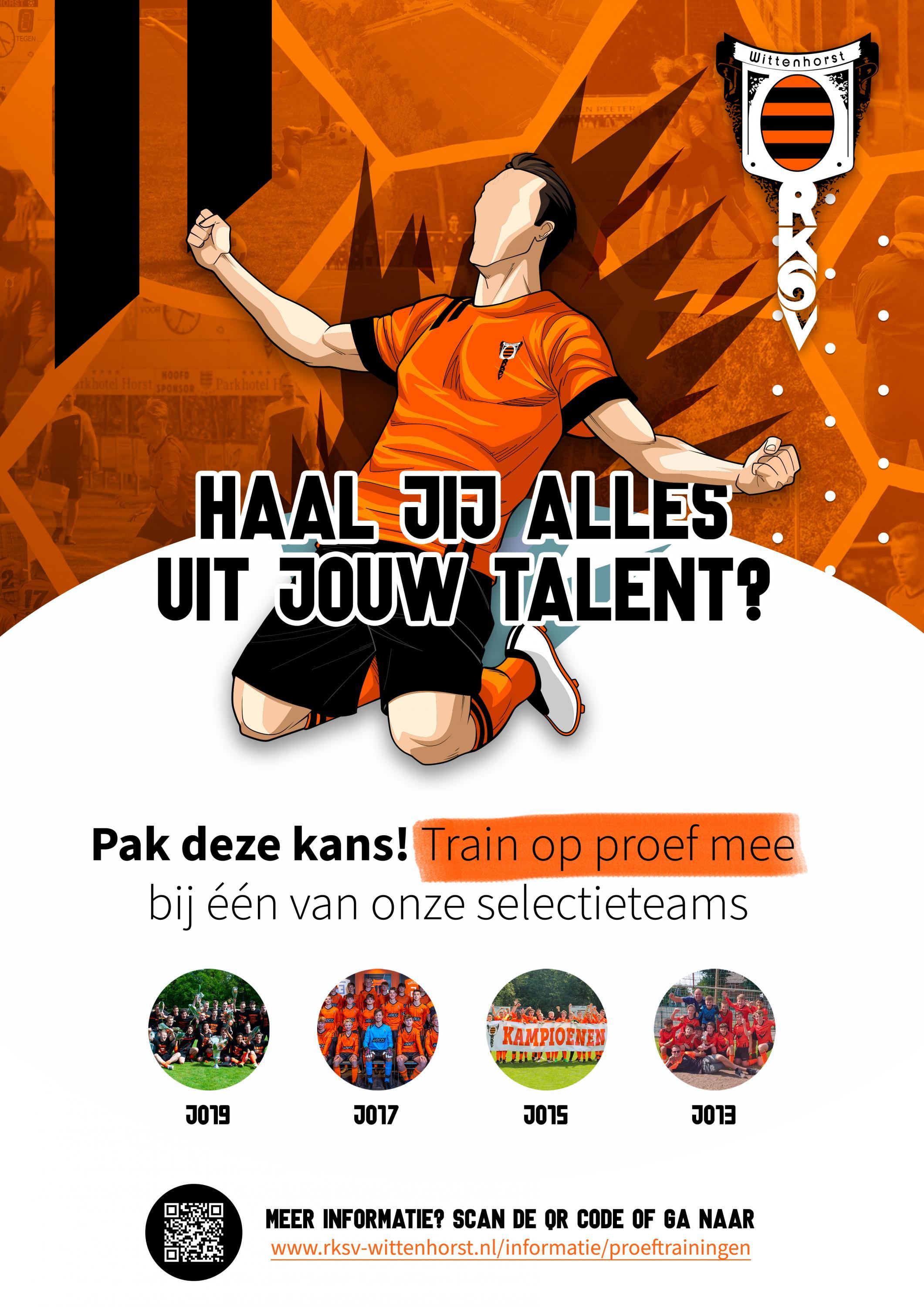 Speel jij bij een andere voetbalclub en twijfel je of er misschien meer te behalen is met jouw talent? Train dan eens mee met een van onze selectieteams!