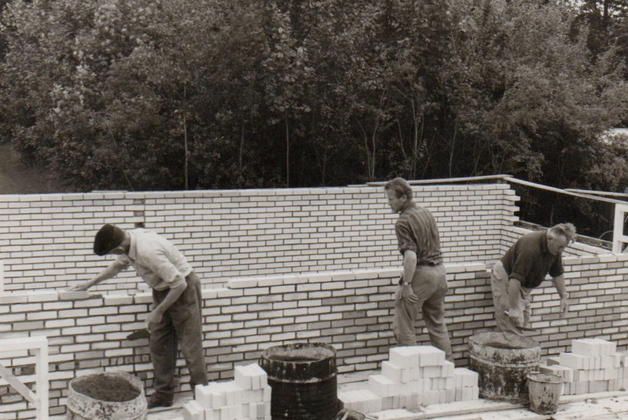 Foto's (uit archief Wittenhorst): de aanbouw van de kantine en enkele leden tijdens de opening van de kantine