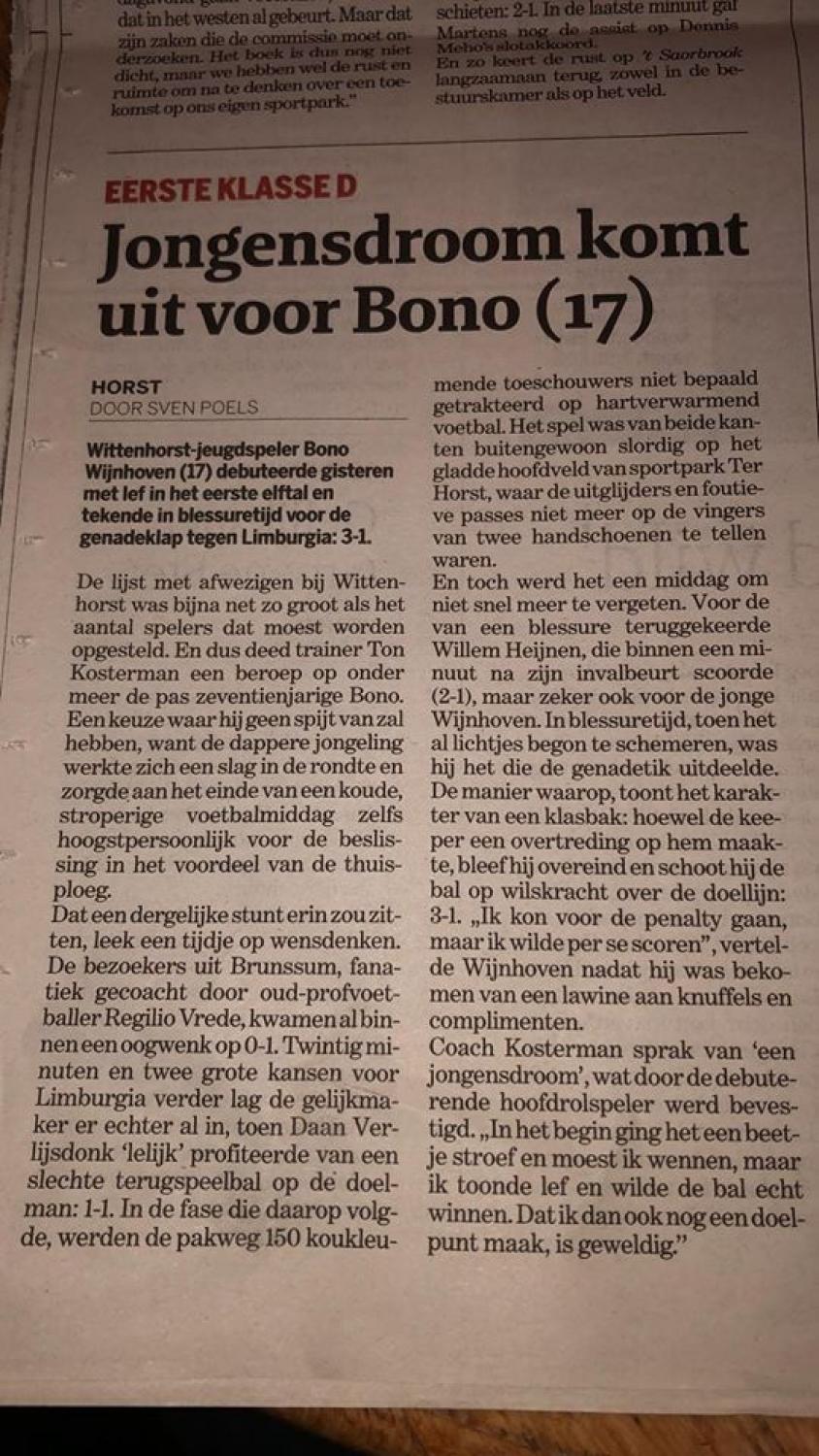 Ook De Limburger besteedt vandaag aandacht aan het droomdebuut van middenvelder Bono Wijnhoven!