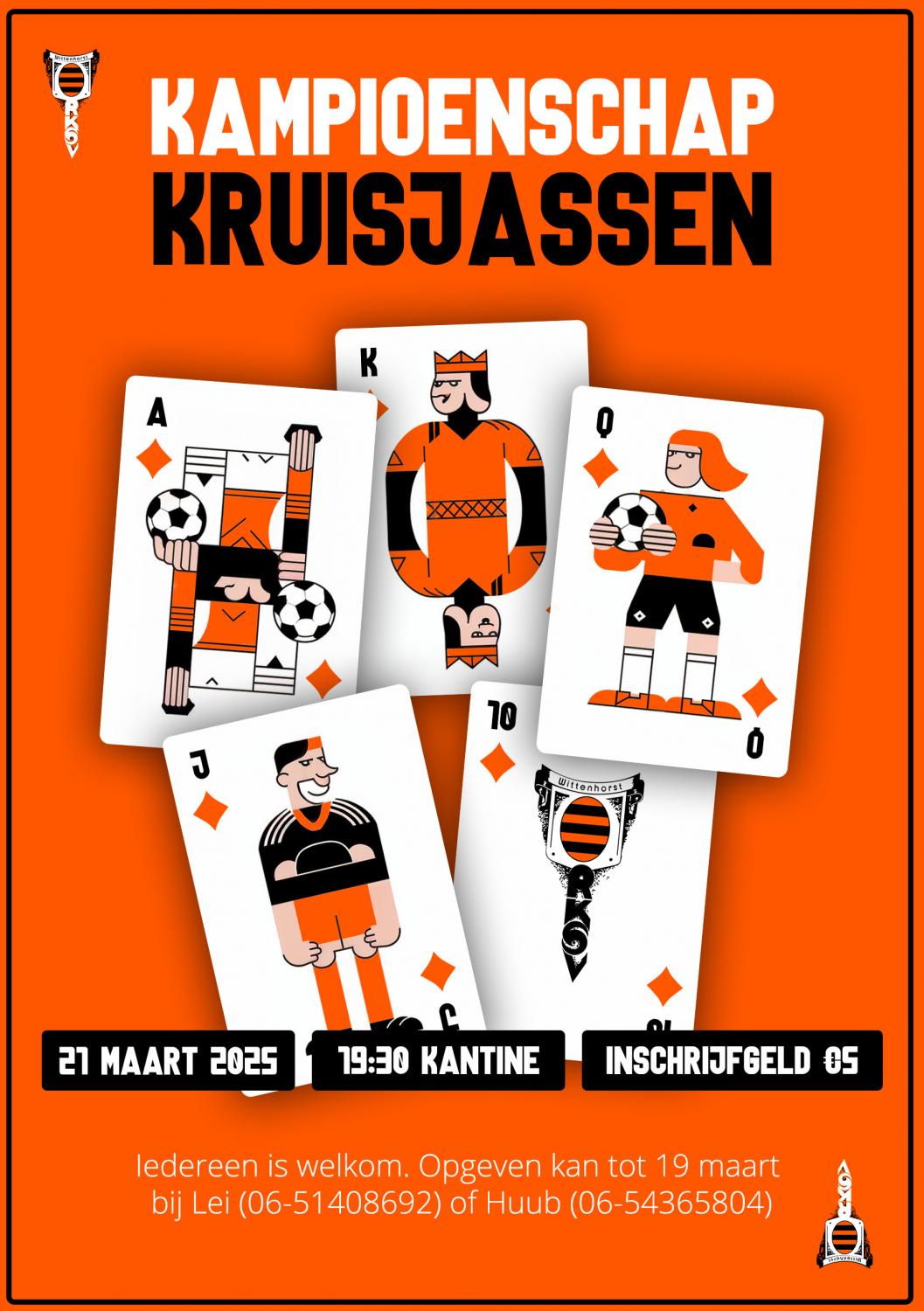 Wittenhorst organiseert op vrijdag 21 maart de jaarlijkse open kruisjasavond, leden en niet leden kunnen hieraan deel nemen. Wie wordt onze nieuwe kruisjaskampioen. De avond vindt plaats in de kantine en begint om 19.30 uur. Inschrijfgeld € 5,-. Opgeven, graag tot uiterlijk 19 maart, via Lei v.d. Bekerom, (06-51408692) en/of Huub Cox (06-54365804). Ook als je nog nooit gekruisjast hebt is het enorm gezellig om aan mee te doen.