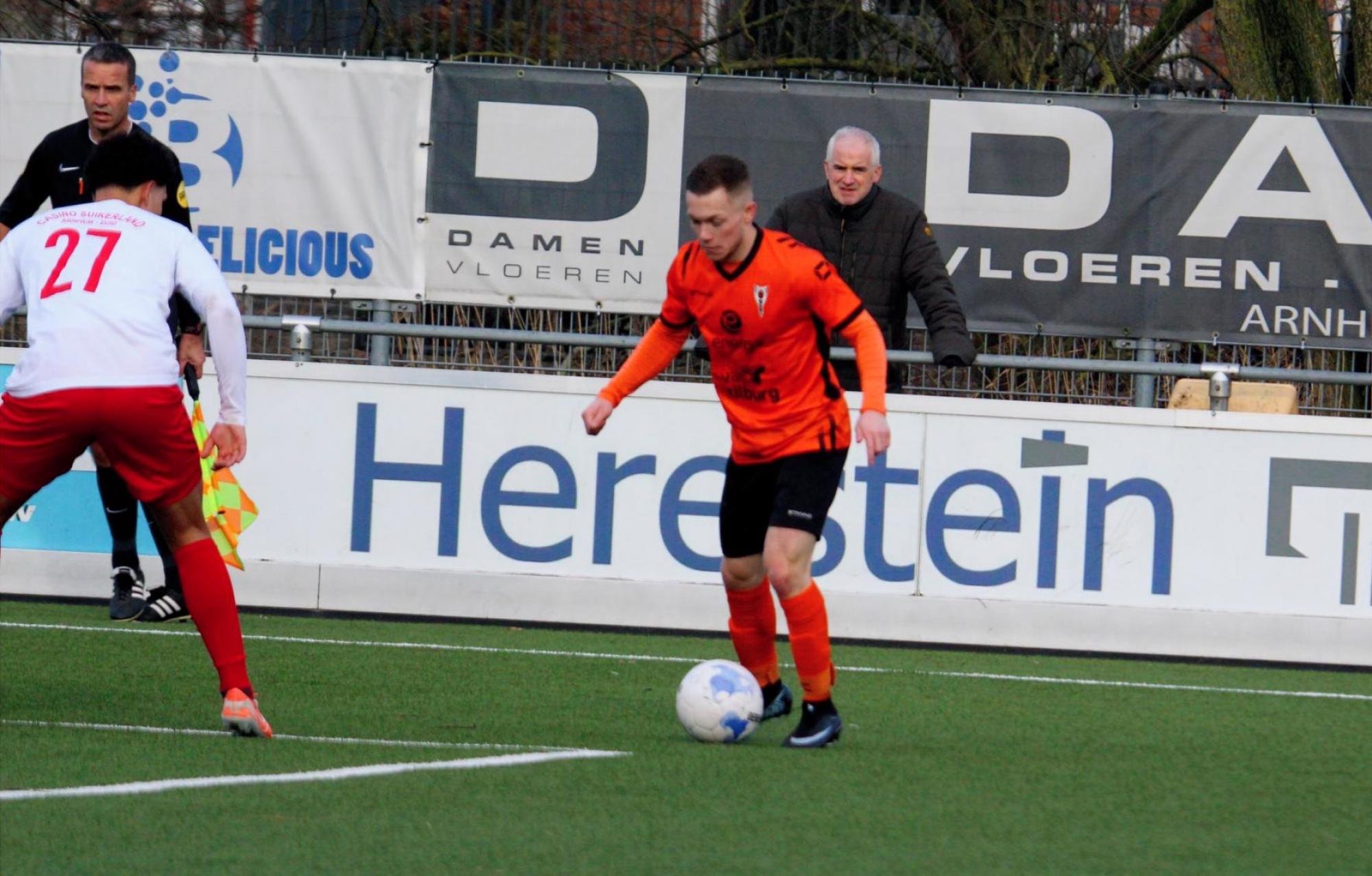 De bezoekers uit Horst kwamen goed voor de dag. Waar de eerste kans van de wedstrijd nog voor de thuisploeg was (een poeier van Ozcelik werd gestopt door Craenmehr), creëerden de Horstenaren aardig wat kansen in de eerste helft. Vlak na de kans van de Arnhemmers schoot Van Kuijck op doel, maar de keeper stond paraat. Tien minuten later was het opnieuw de rappe buitenspeler die een kans wist te creëren, maar zijn inzet zeilde nipt over het doel. Rond het half uur volgde er een kanonskogel van Jacobs, maar zijn afstandsschot werd nipt onder de lat weggetikt. Ook Beurskens wist bijna te scoren, ware het niet dat zijn inzet tot corner werd verwerkt. Dat de oranjehemden hun kansen niet verzilverden, brak ze vlak voor rust op: een rollertje van Lammert Roossien belandde in het doel: 1-0 en tevens rust.