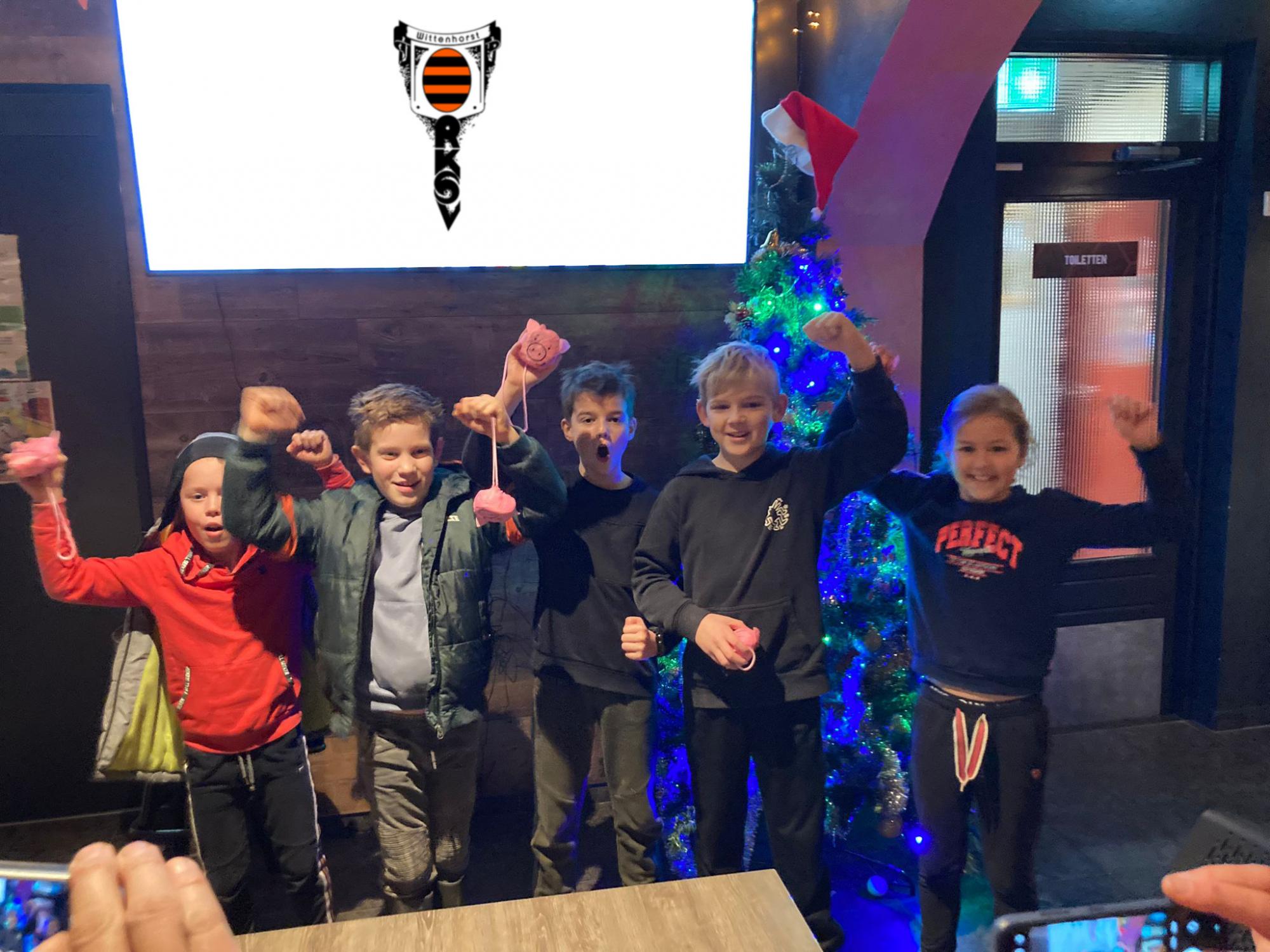 Afgelopen vrijdag was het Forest Friday, een speurtocht in het donker en leuke spellen voor de jeugd van Wittenhorst in de kantine. Ondanks de regen waren de JO7 t/m JO11 teams in groten getale aanwezig. In het bos zochten ze naar 20 hesjes met voetbalvragen, een test van zowel kennis als vindingrijkheid. De vraag om een 'kwakel' en gele bloem mee te brengen, stimuleerde de nodige creativiteit bij de deelnemers. Binnen werden verschillende activiteiten aangeboden: sjoelen, Knex en een gehaaide haaienquiz. Zonder Hay. Bij binnenkomst werd iedereen voorzien van een broodje, soepje en ranja. Dankzij het kantinepersoneel, begeleidende ouders en drie Dendron kids was het weer een geslaagde avond. Bedankt namens de jeugdactiviteitencommissie: Juw Haai!