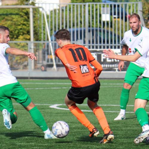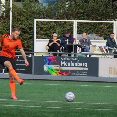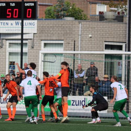 Vlak voor rust ontstond er flink wat commotie langs de lijn na een forse overtreding bij de thuisploeg. Een speler van de oranjehemden werd van achteren rigoureus omver gezaagd. De gastheren mochten van geluk spreken dat de ruststand van 0-0 met elf tegen elf werd bereikt.