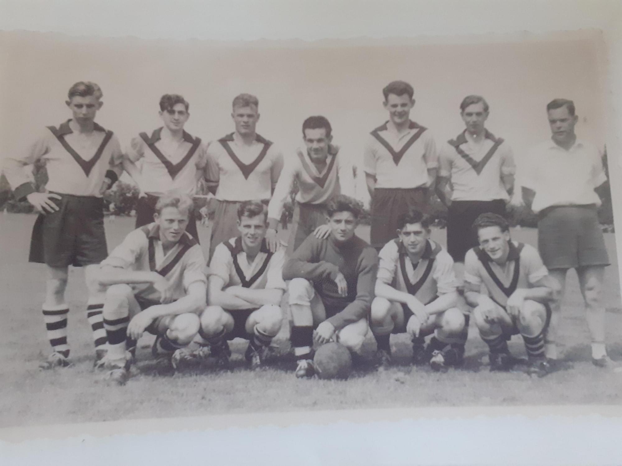 Frans is geboren en getogen in America. Hier leerde hij ook het spelletje en heeft hij verschillende jaren gevoetbald. Op de foto hierboven zien we Frans met zijn toenmalige teamgenoten van AVV op de teamfoto. Frans is staand de tweede van rechts. Frans kocht zijn eerste voetbalschoenen met dorpsgenoot Teng Logtens. Voor de jongere lezers onder ons: Teng is ook van oorsprong Americaan, maar voetbalde in de jaren '40 en '50 van de vorige eeuw bij Wittenhorst en vierde hier verschillende kampioenschappen. Ook Frans zocht zijn voetbalheil in Horst; daar was het net allemaal wat beter geregeld. Het had niet veel gescheeld of Frans was nooit gaan voetballen: zijn vader beugelde namelijk en wilde dat de jonge Frans dit ook ging doen. Dat voetballen was allemaal veel te lomp en gevaarlijk. Uiteindelijk kreeg Frans toch zijn zin.
