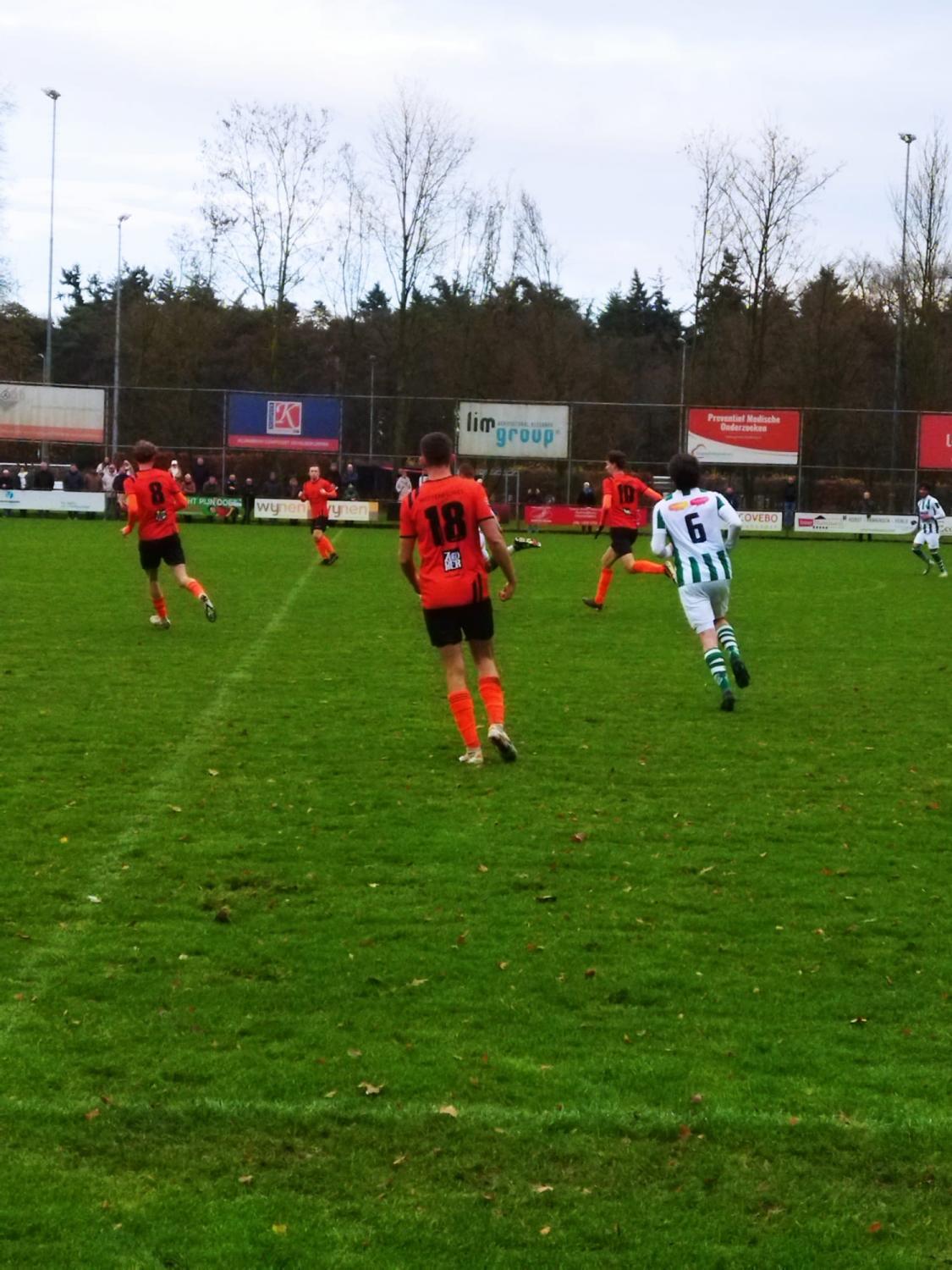 Vijf minuten voor rust kwamen de bezoekers op gelijke hoogte. Waar eerst een uitbraak van Van Kuijck kon worden gestopt, zorgde Bas Brussaard aan de andere kant met een effectief zondagsschot voor een gelijke stand bij de rust.
