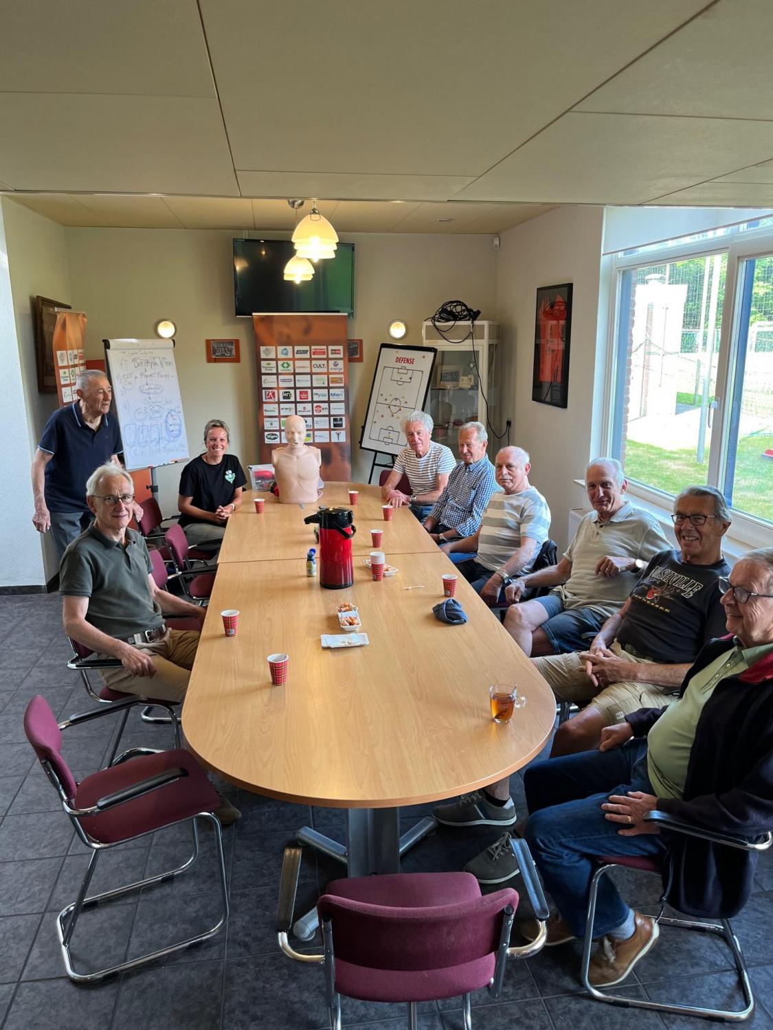 Vandaag gaf Mieke Brugmans (Juntos en ouder van één van onze leden) hier een training in. Eerst een bakkie koffie en toen begon het. Ze hebben ervan genoten. Mieke doet dit op haar eigen authentieke open manier. Heel erg plezierig. De club is weer een paar reanimatie-experts rijker. Hopelijk hebben we deze vaardigheid niet vaak, of liever 'nooit' nodig. Bedankt voor ieders inzet!