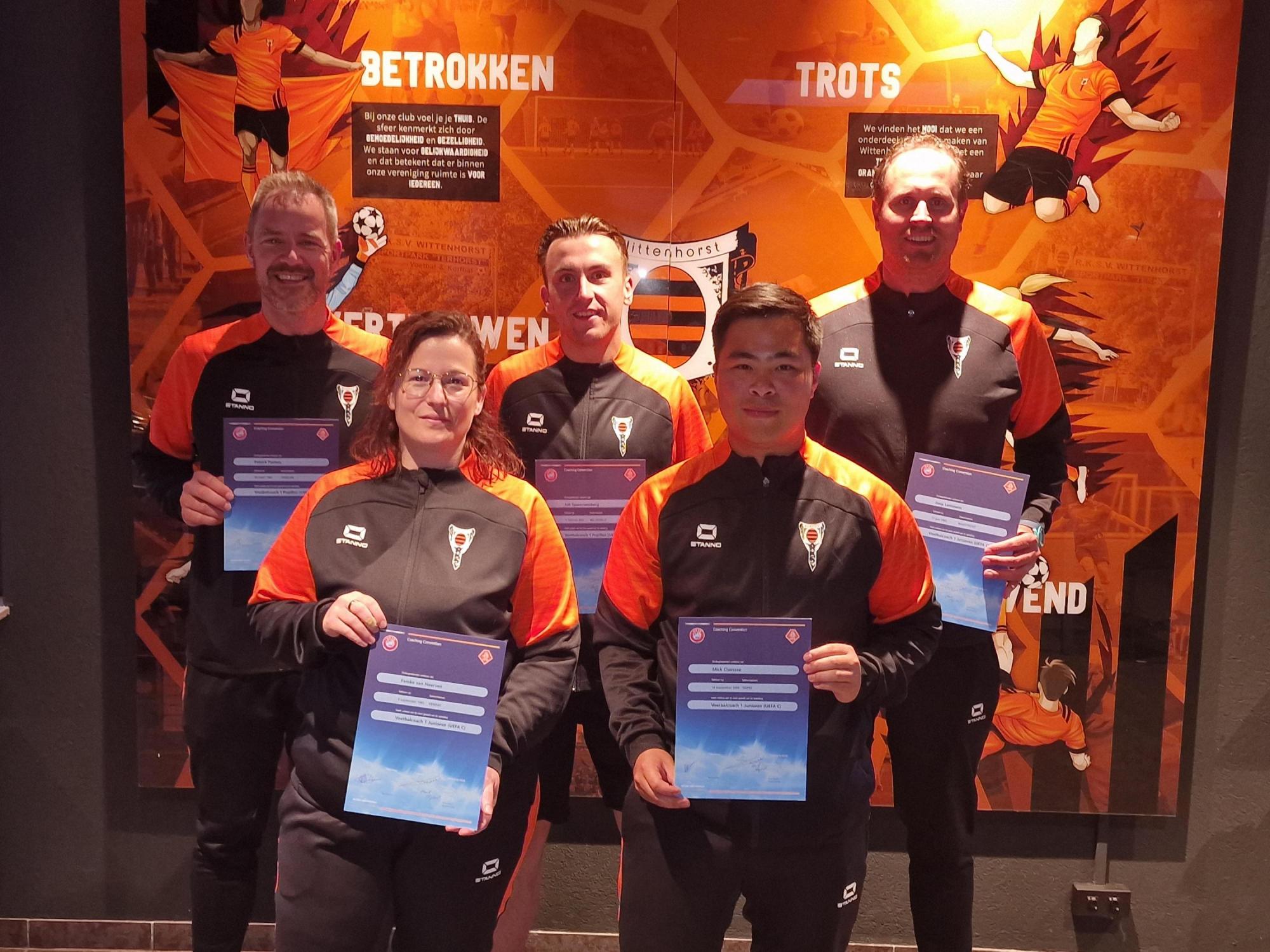 Met trots mogen we melden dat recent weer een groep enthousiaste Wittenhorst-trainers hun KNVB-trainerscursus met succes heeft afgerond! Tijdens de voorjaarstrajecten van de KNVB behaalden álle deelnemers hun diploma. Een prestatie om trots op te zijn!