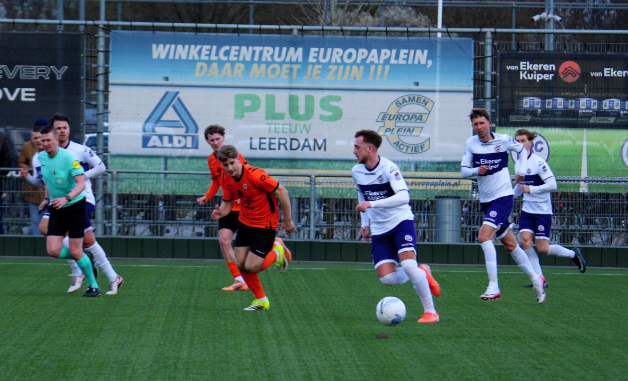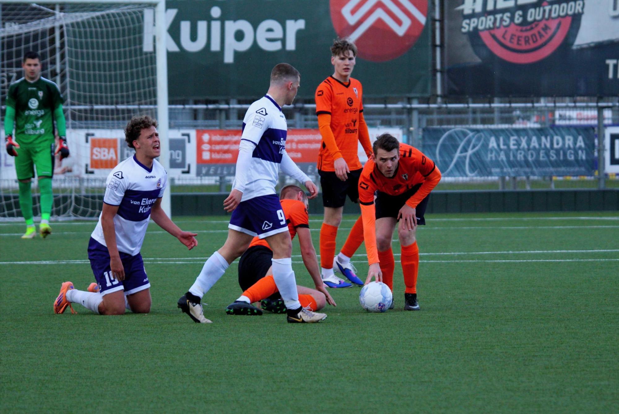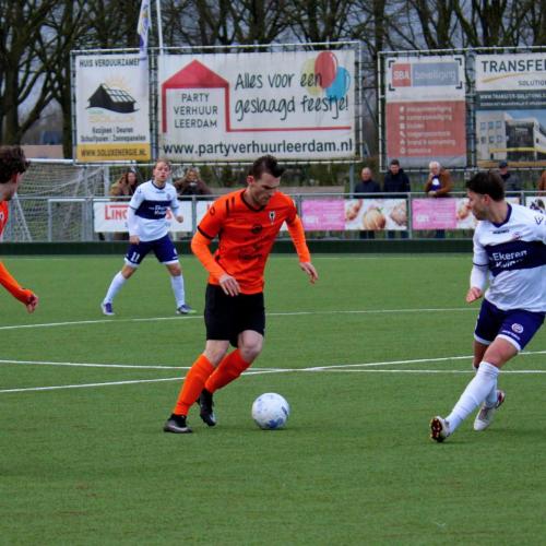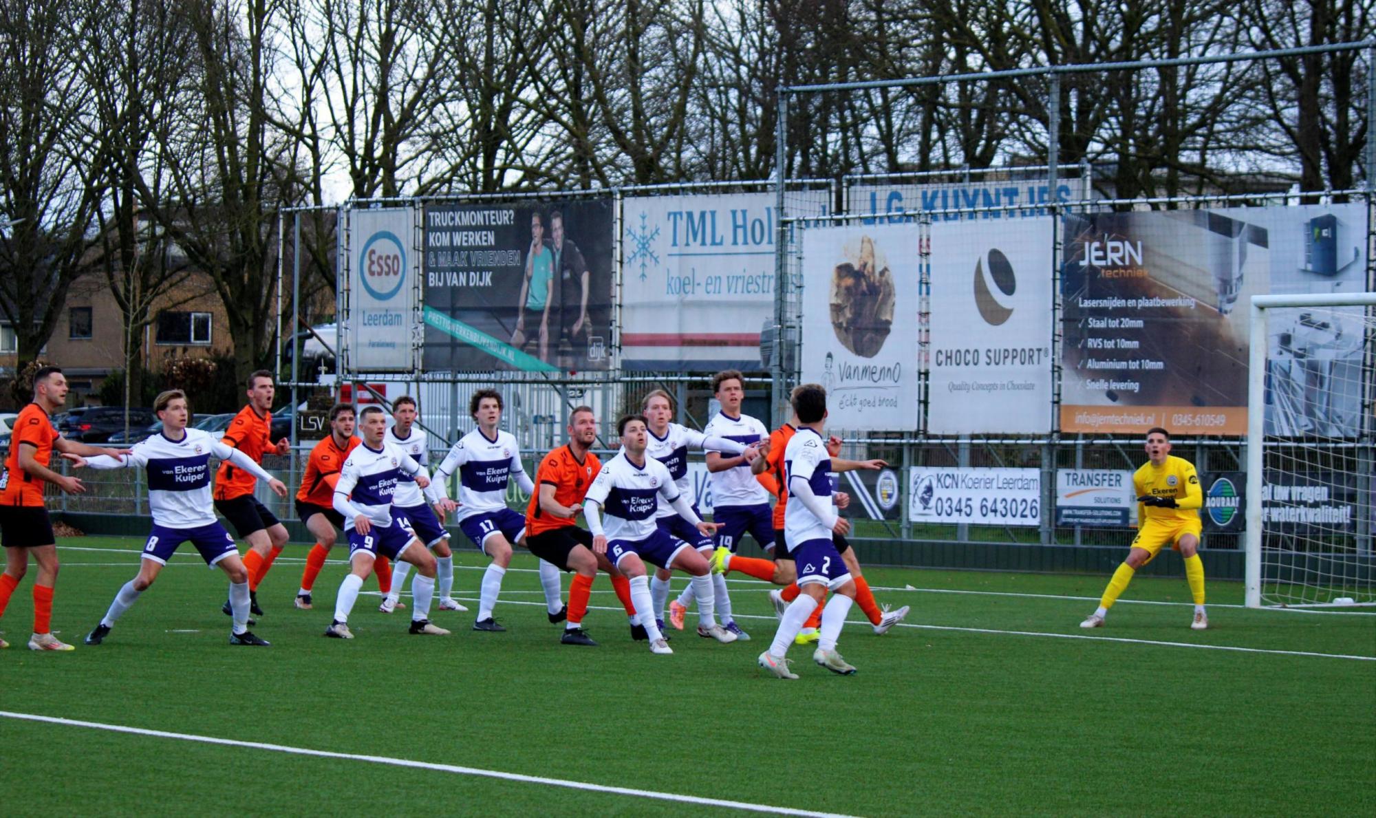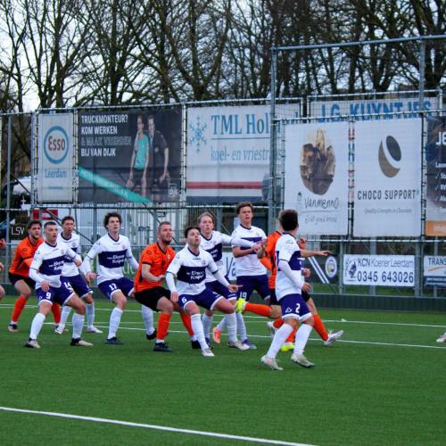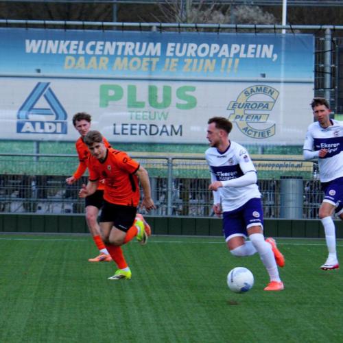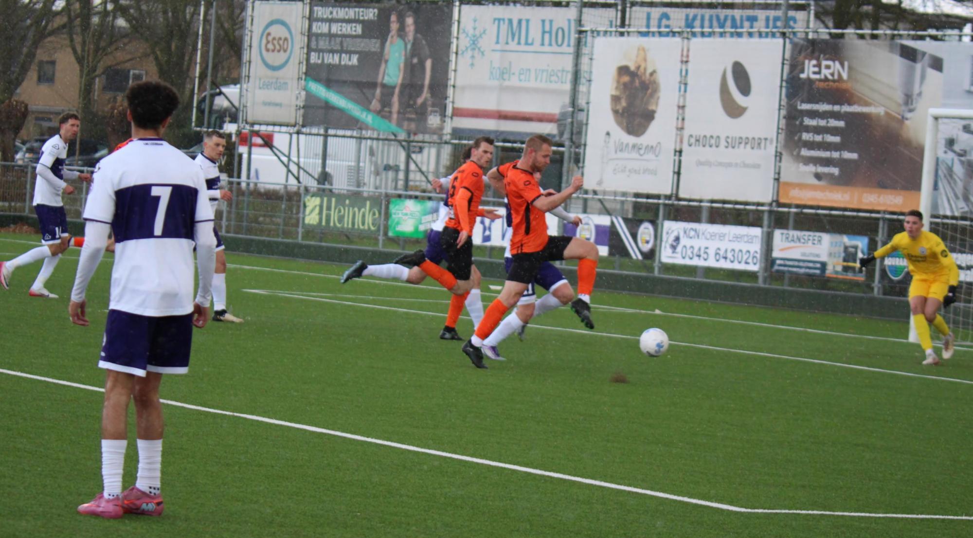 Met een enigszins aangepast concept probeerde trainer Gommans wat meer grip en druk naar zijn middenveld en voorhoede te creëren. Na 45 seconden hadden de oranjehemden de score al kunnen openen, de inzet van Luc van Kuijck miste de echte kracht om de Leerdammer doelman te verrassen.