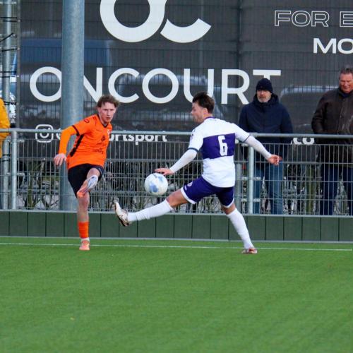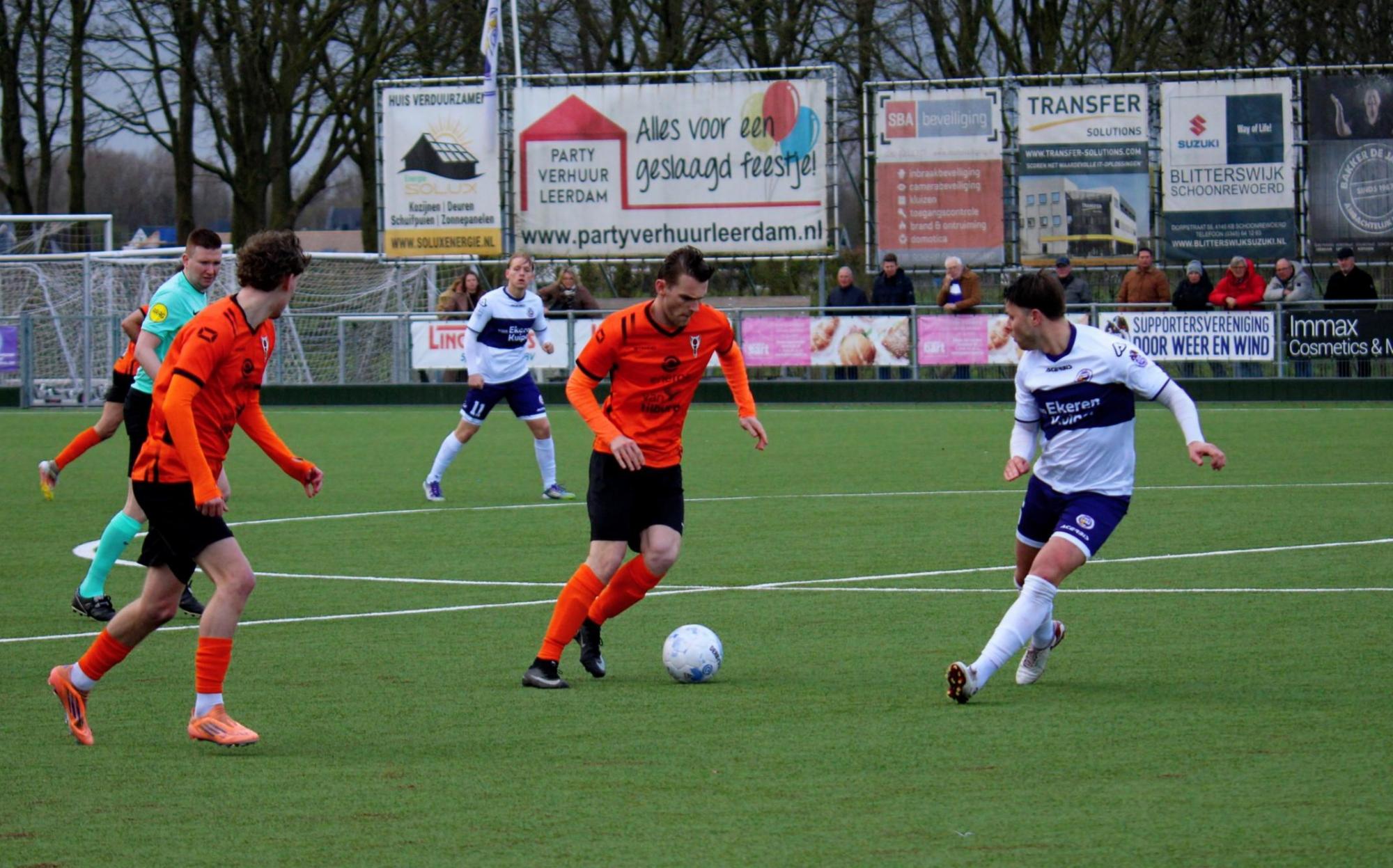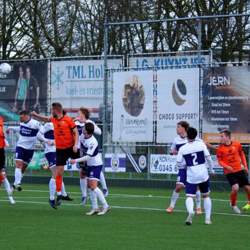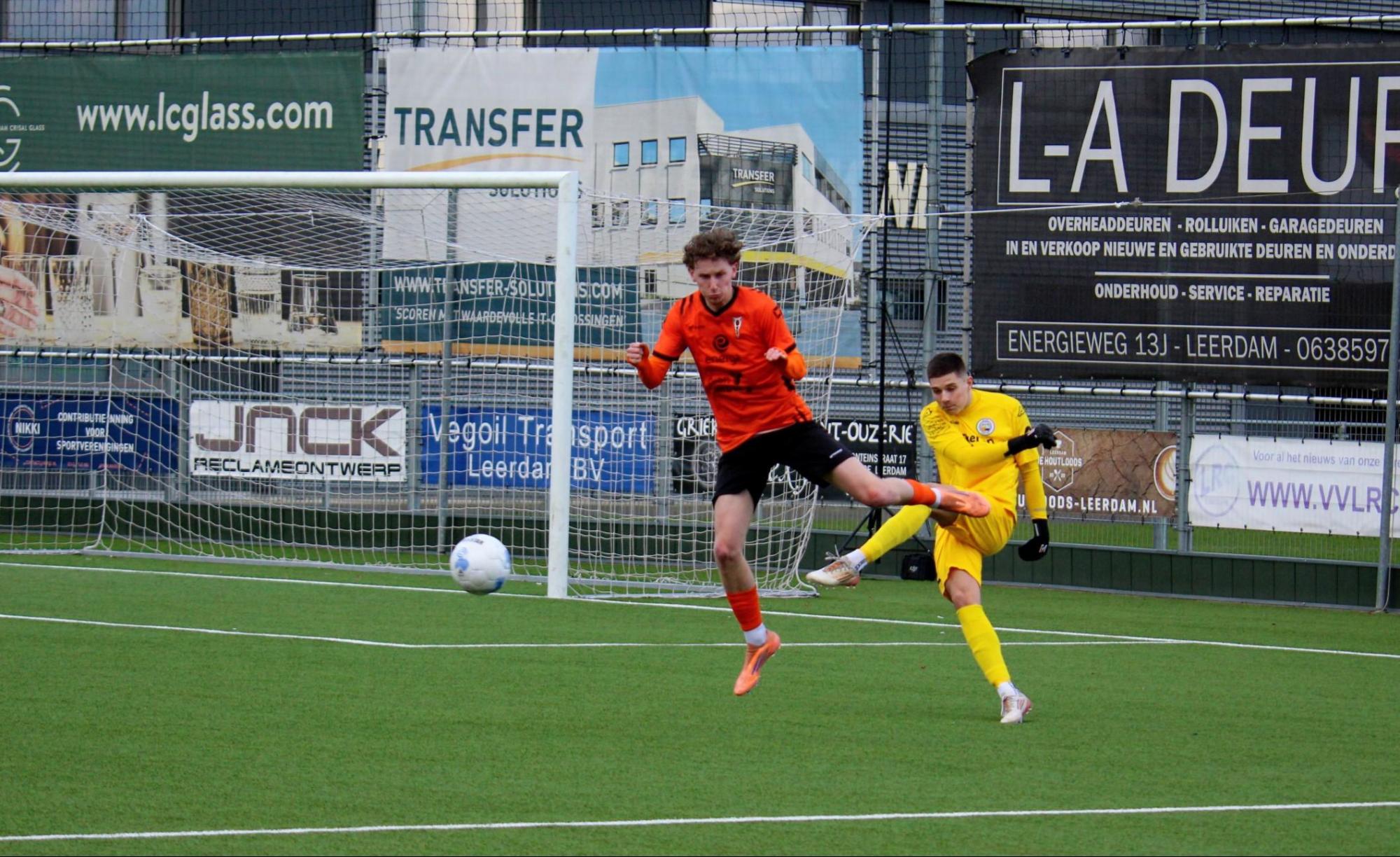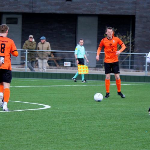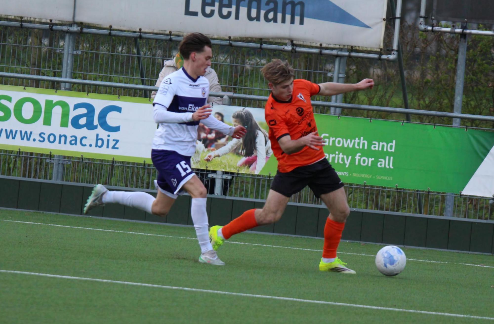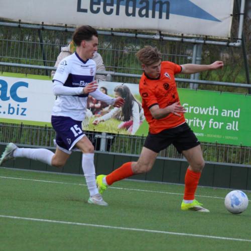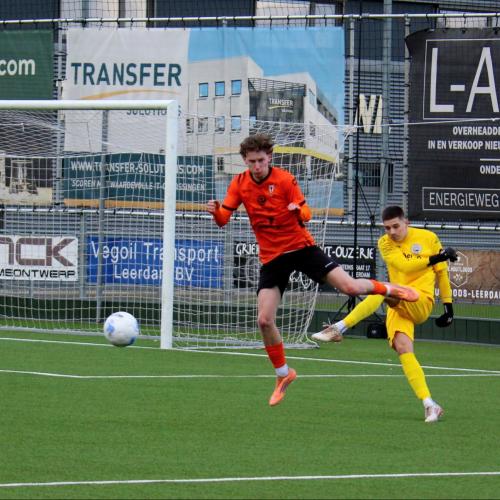 Met een enigszins aangepast concept probeerde trainer Gommans wat meer grip en druk naar zijn middenveld en voorhoede te creëren. Na 45 seconden hadden de oranjehemden de score al kunnen openen, de inzet van Luc van Kuijck miste de echte kracht om de Leerdammer doelman te verrassen.