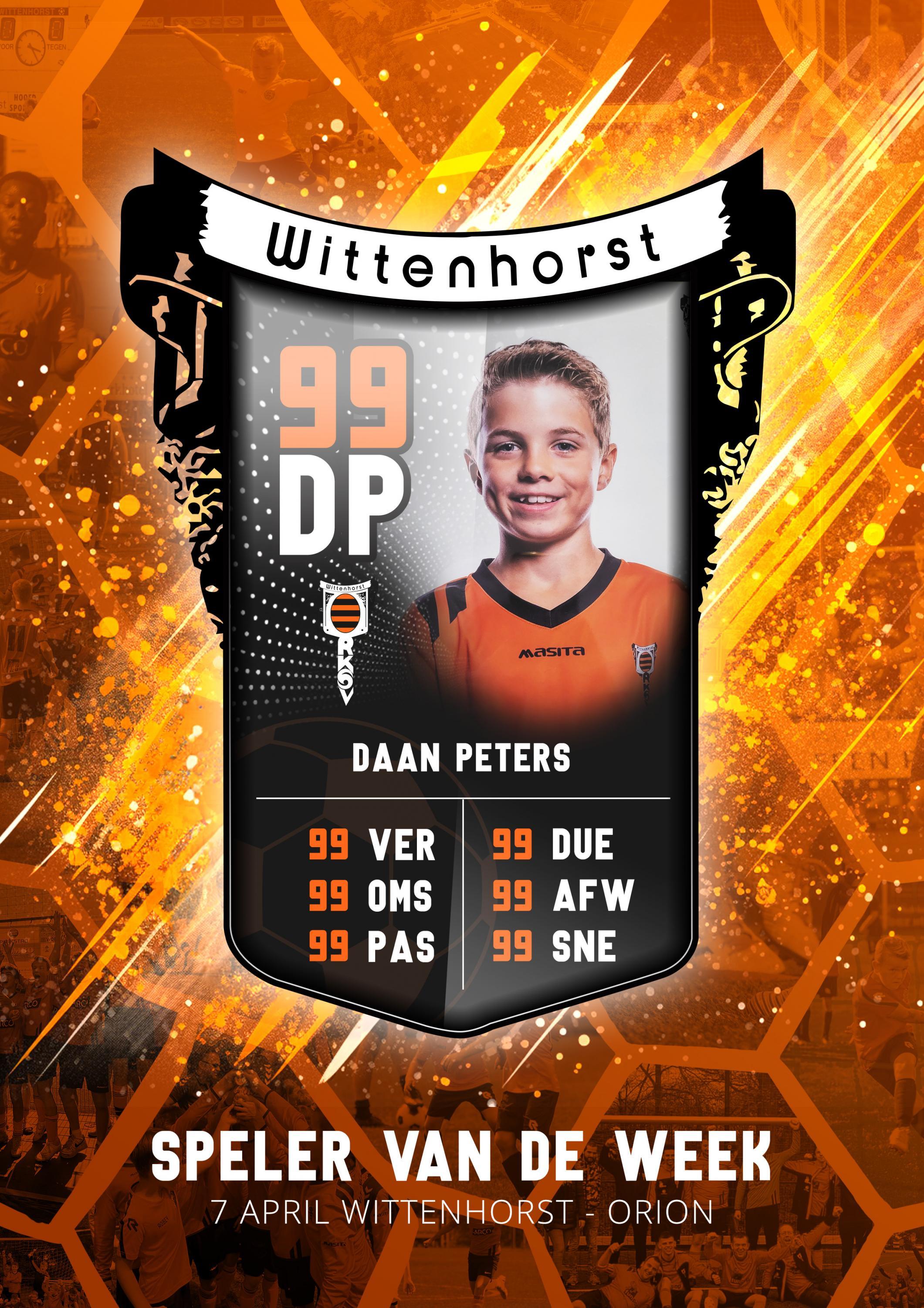 Daan Peters (JO11-1) en Freek Arts (JO10-1) zijn zondag 7 april de spelers van de week bij Wittenhorst 1 tegen Orion. Het einde van het seizoen is in zicht. Elk punt is welkom. Jullie support zal ze goed doen. Moedig onze jongens daarom flink aan!