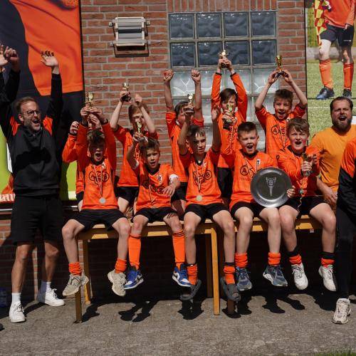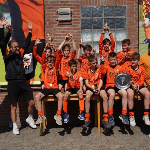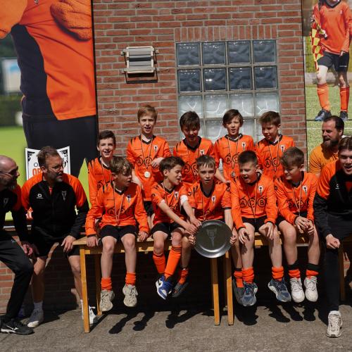 Aan het eind van een zinderende speeldag was het tijd om de kampioenen te huldigen. Henk Hoeijmakers, coördinator van JO11 en JO12, bracht bij elk team treffende anekdotes naar voren. Van dat ene onmisbare doelpunt in blessuretijd tot de keeper die het verschil maakte door alles er uit te houden – elk team schreef zijn eigen verhaal.