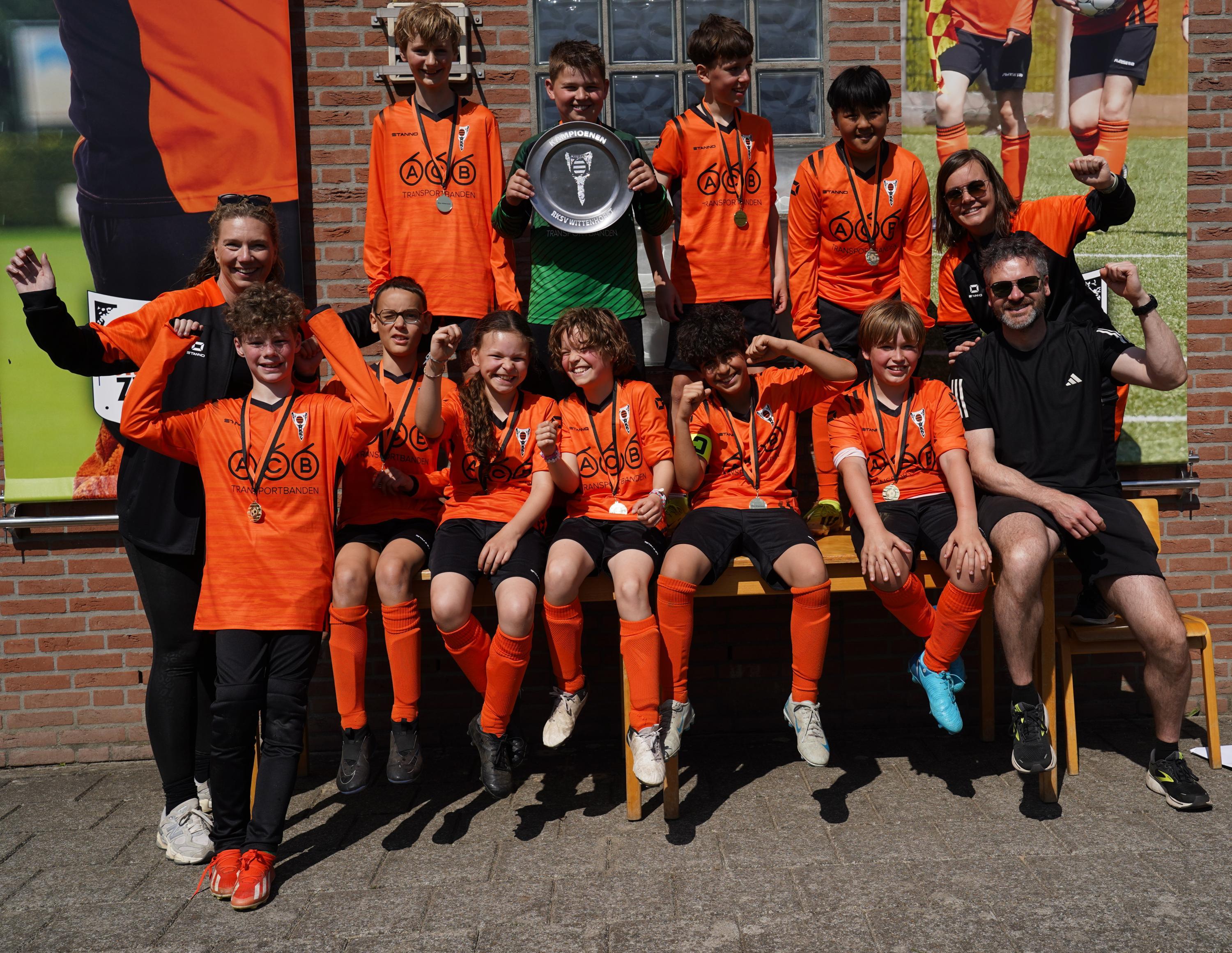 Afgelopen zaterdag werden maar liefst vier jeugdteams van Wittenhorst kampioen: JO11-1, JO11-2JM, JO11-4 en JO12-3JM. Eerder was JO12-2 al verzekerd van de titel, wat betekent dat vijf jeugdteams in korte tijd de oranje/zwarte vlag konden hijsen. Een zeldzaam moment van glorie, maar bovenal een bevestiging van groei, plezier en passend voetbal. Gefeliciteerd JO11-1, JO11-2, JO11-4, JO12-2 én JO12-3 – jullie hebben het geflikt!