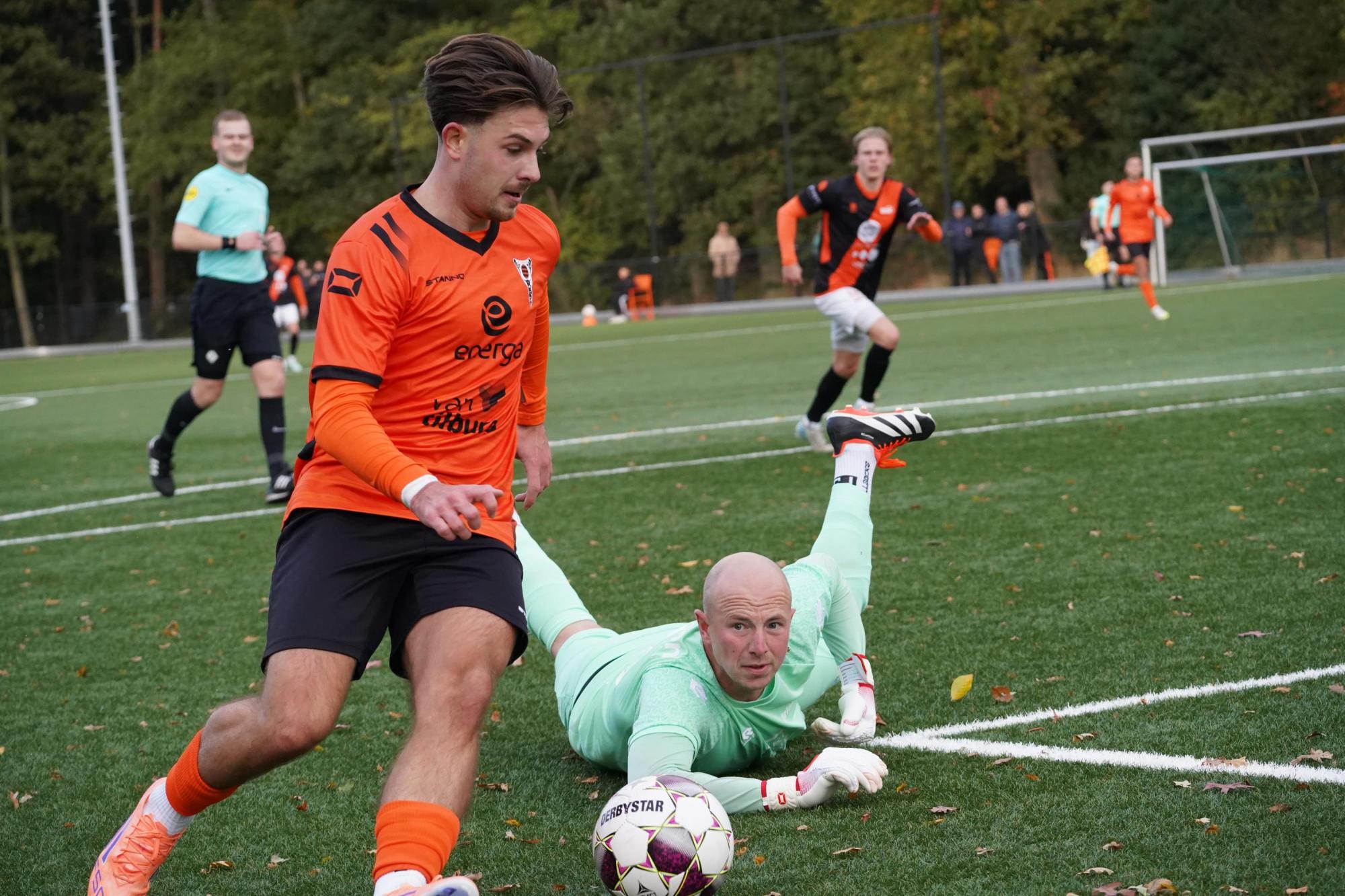 Tien minuten voor rust kwamen de oranjehemden, zij het tegen de verhouding, op voorsprong. Een goede bal van Ruud Meijers op Jens Jacobs werd perfect bediend bij Gido van Helden, die fraai afrondde. De onverwachte voorsprong bleek tevens de ruststand.
