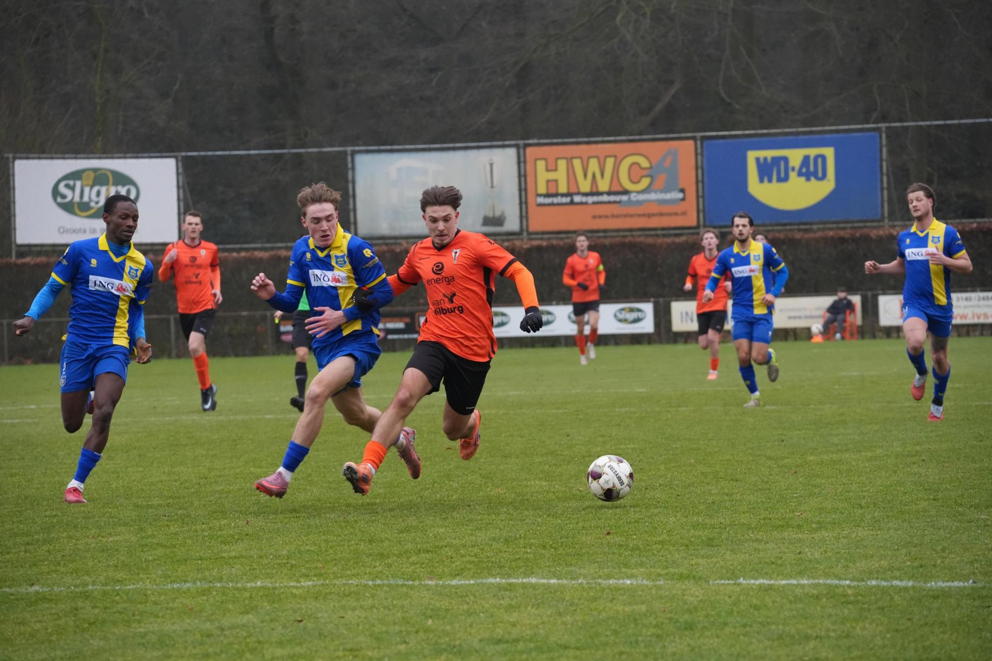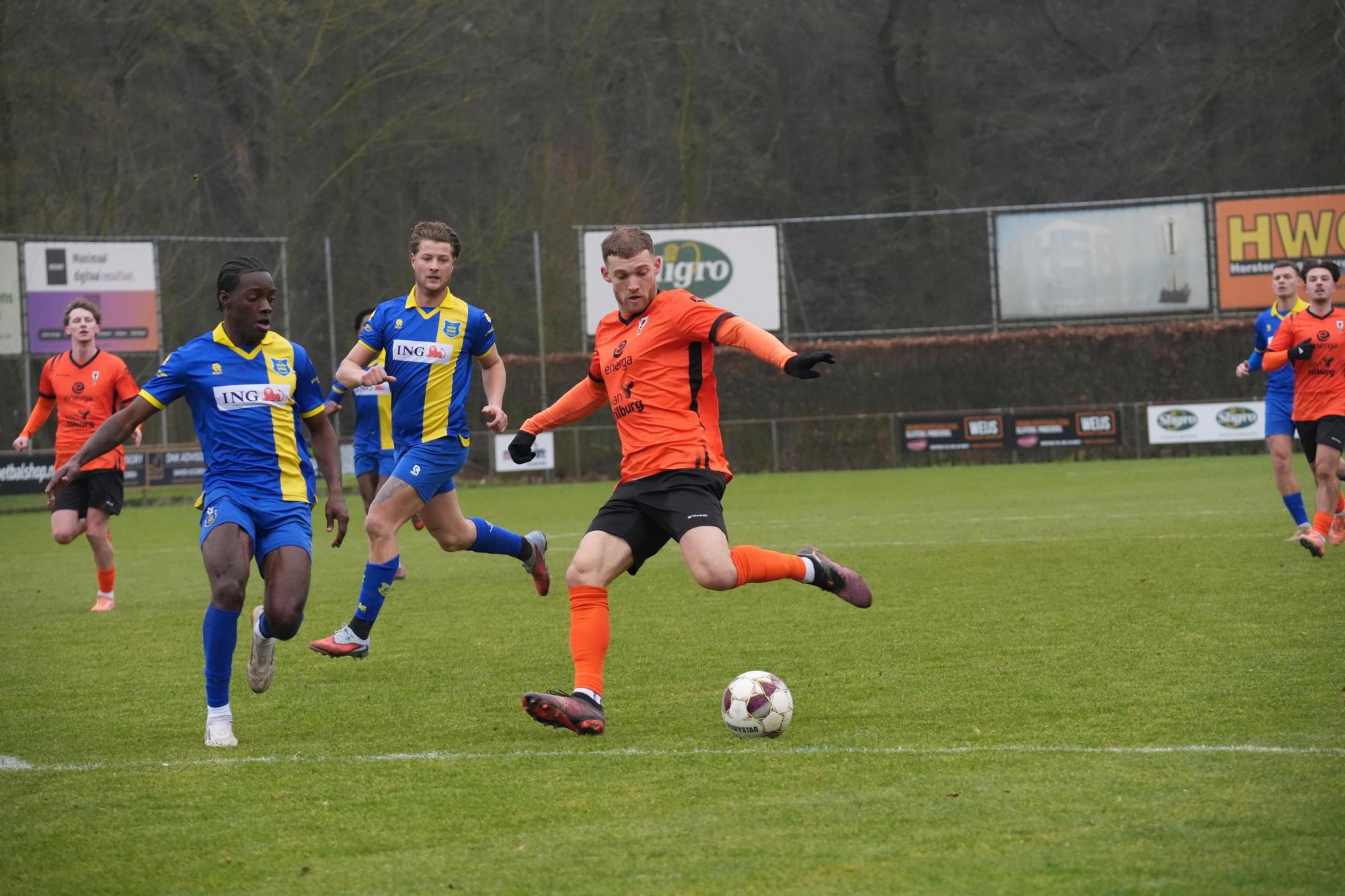 De eerste kans van de tweede helft kwam via een vrije trap van Hendriks, maar hij zag zijn inzet net over het Brabantse doel vliegen. Snel hierop zorgde een buitenspelval ervoor dat een veelbelovende Horster aanval werd onderbroken. Toen de wedstrijd een uur onderweg was, leek de wedstrijd opeens gespeeld. In amper één minuut scoorden de bezoekers twee keer. Eerst schoot Rick Mulder een afgevallen bal hard en zuiver binnen en direct na de aftrap profiteerde Teun de Leeuw van een misverstand in de Horster defensie en schoot hij de tweede treffer tegen de touwen.