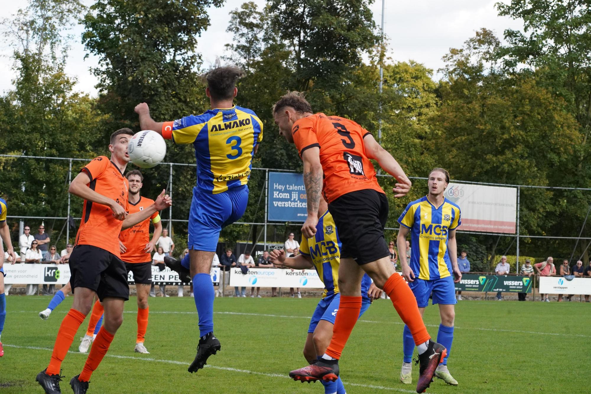 In de slotfase van de eerste helft redde Craenmehr een snelle tegenstoot van de bezoekers en ditzelfde deed aanvoerder Van Horne enkele minuten later op vakkundig wijze. De laatste kans was voor Verlijsdonk, die na goed doorzetten van Van Helden zijn halve inzet gestopt zag worden.