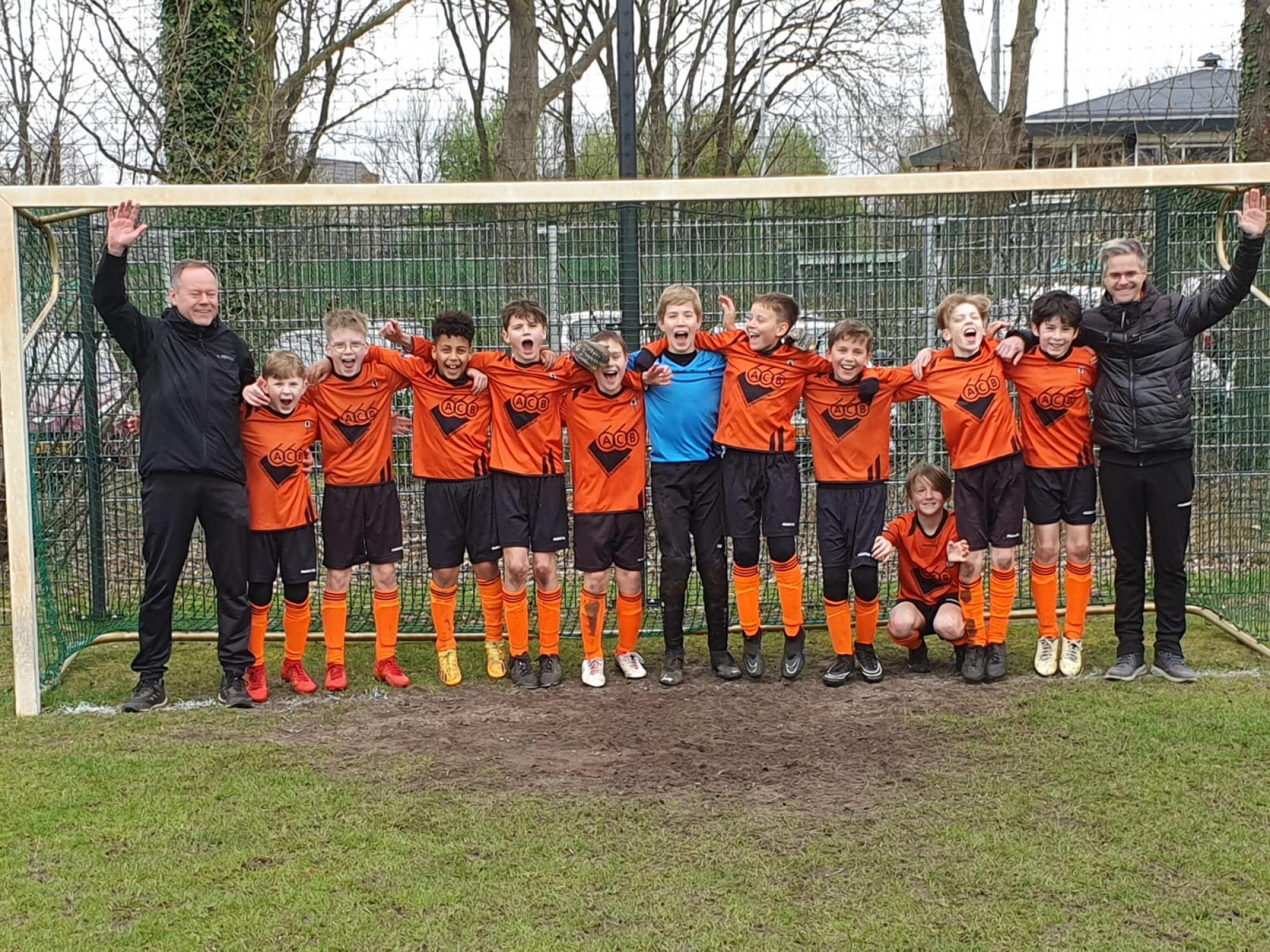 Maar wij eveneens kampioen, omdat doelsaldo niet meetelt en beide teams evenveel punten hebben. Na de teleurstelling van de verloren wedstrijd hebben we het feestje in de kantine toch gevierd en kwam de lach weer snel op de gezichtjes. Aan het begin van het seizoen 2023-2024 hadden de jongens een heel moeilijke start, maar door hard te werken en de wil om zelf beter te worden, werden er stappen voorwaarts gezet. De jongens zijn niet alleen individueel beter geworden maar ook als team naar elkaar toegegroeid. Mooi om dit proces te zien gebeuren.