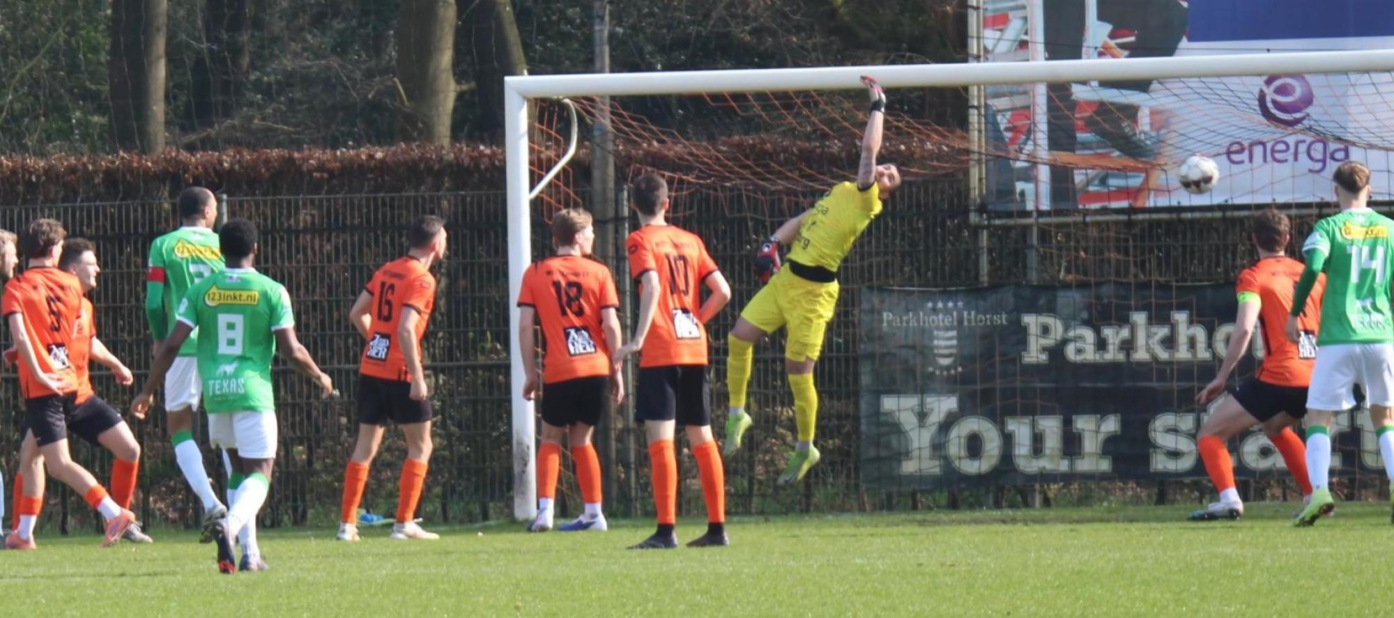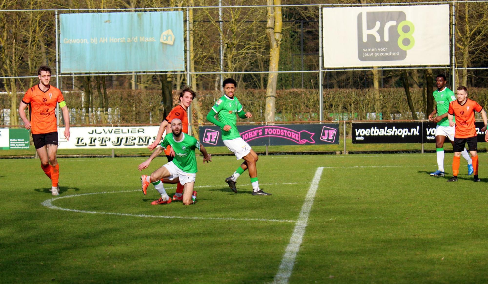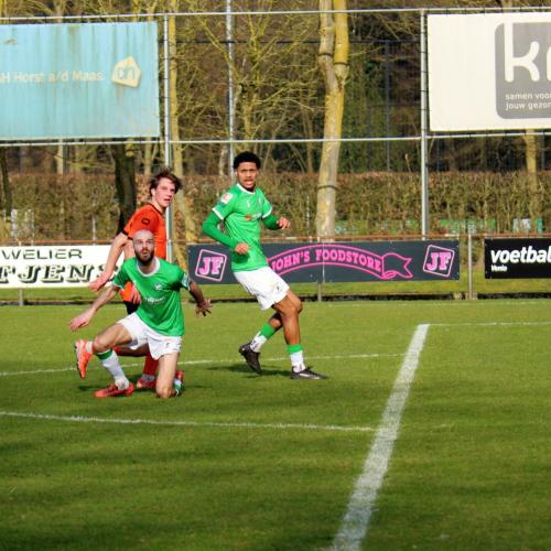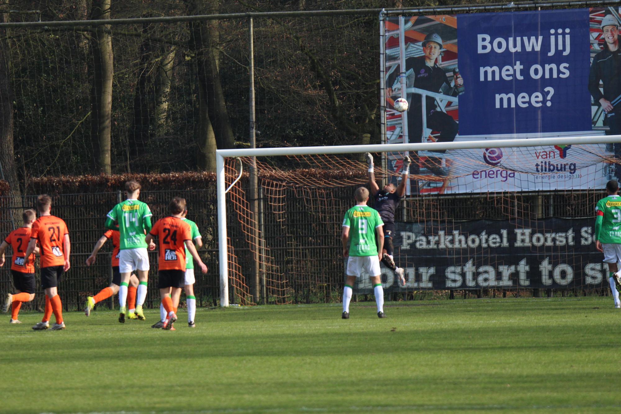 De bezoekers uit Breda schoten uit de startblokken door in de eerste minuut al een hoekschop binnen te koppen via Lars de Roos. Deze valse start kwamen de Horstenaren nimmer te boven. Waar dreiging via Van Helden tot een corner leidde, stopte Craenmehr na een kwartier een schot van De Jong. In de achttiende minuut kreeg Verlijsdonk een grote kans na een vrije trap van Van Kuijck, maar zijn schot zeilde over het doel. Amper drie minuten later wisten de Brabanders de score te verdubbelen via Van Eerd, wiens kopbal via de handen van Craenmehr in het doel verdween.