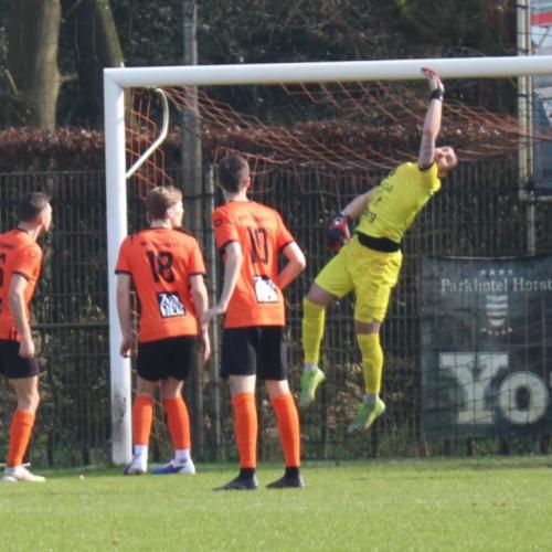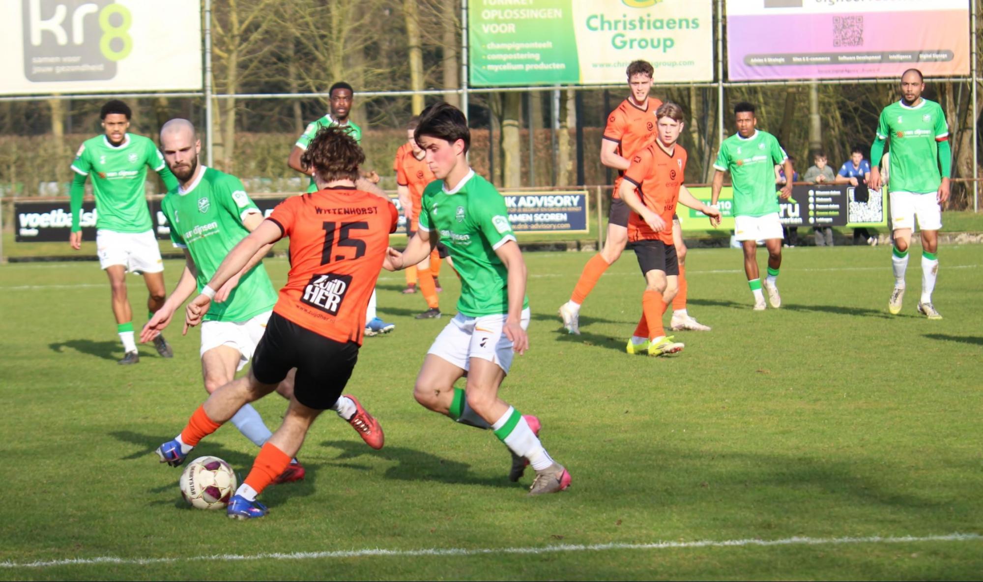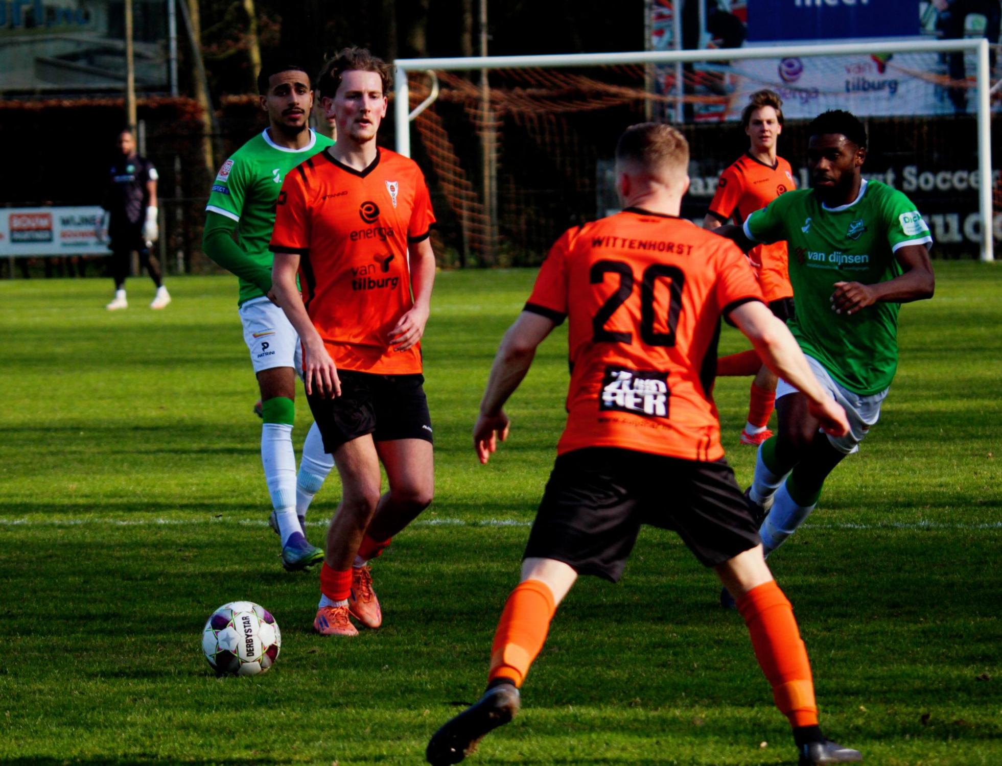 Nog voor het half uur was de wedstrijd eigenlijk al gespeeld. De bezoekers stelden de achterhoede van Wittenhorst flink op de proef en deze was niet tegen de druk bestand. Een overtreding met als gevolg een strafschop betekende de derde tegentreffer via De Roos. De oranjehemden probeerden het wel, maar verder dan een schot van Van de Riet (gekraakt), een kopbal van Van Horne (naast) en een schot van Van Kuijck (redding) kwam men niet. Een schot op de lat van Baronie voorkwam een vierde tegentreffer.