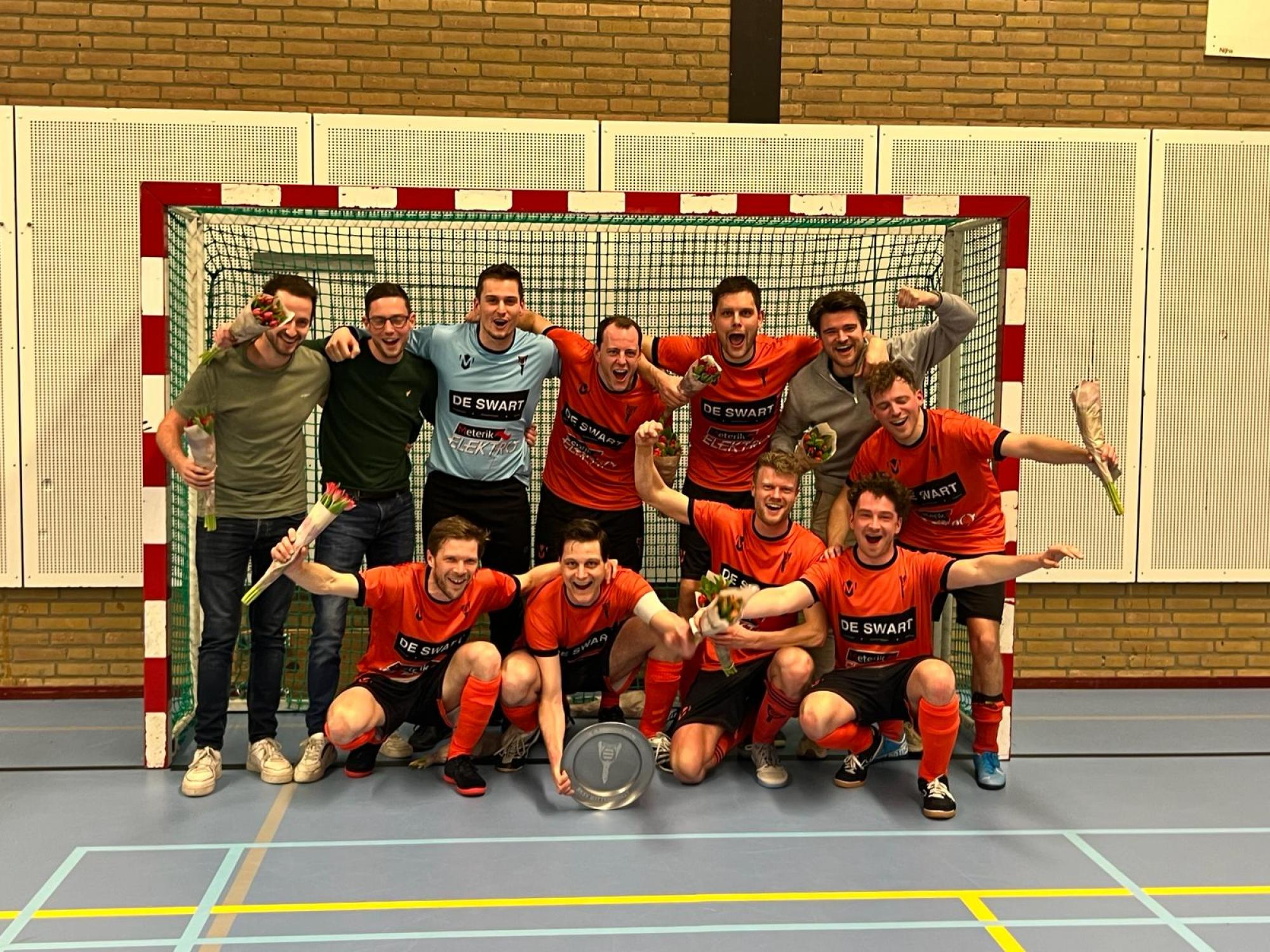 Op vrijdagavond 5 april stond de kampioenswedstrijd voor ons eerste zaalteam op het programma. In Venray wist onze Futsal 1 met 2-6 te winnen van FC Coronaas 7. Hierdoor zijn ze met nog vier wedstrijden te spelen niet meer in te halen en dus kampioen. Het team speelt een fantastisch seizoen. Van de 18 gespeelde wedstrijden wonnen ze er 17 en verloren ze er slechts één. Het doelsaldo liegt er ook niet om: +114.